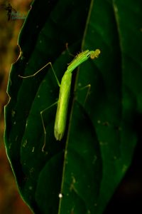 Zu sehen ist eine kleine aber voll ausgewachsene Gottesanbeterin (Mantide).