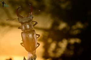 Ein Männchen bei Sonnenuntergang, kurz vor dem Abflug in den Nachthimmel. Braubach und Umgebung bieten diesem beeindruckenden europäischem Großkäfer noch den Lebensraum, um im Juni/Juli diese interessanten Schwärmabende zu beobachten.